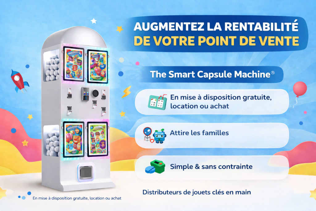 L’installation de distributeurs de jouets pour enfant est fortement recommandée dans les restaurants familiaux, les parcs de loisirs, les campings, les galeries commerciales, les bureaux tabac, les boulangeries, les clubs de plage mais aussi dans tous les commerces qui reçoivent régulièrement des enfants dans leur établissement ou qui sont situés sur emplacement de fort passage.